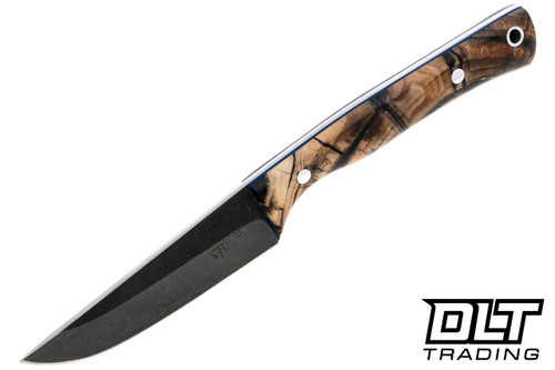 7Forge Culprit CPM-154 – Amboyna Burl – Black Canvas Bolster – Faux Mother of Pearl Spacer – Black Liners